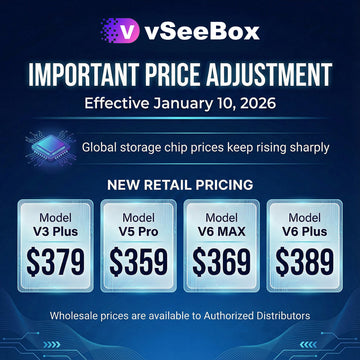 Due to the continued sharp increase in global storage chip costs, vSeeBox will be adjusting retail and wholesale prices across select models. This update allows us to maintain the performance, stability, and quality standards you expect from every vSeeBox device.