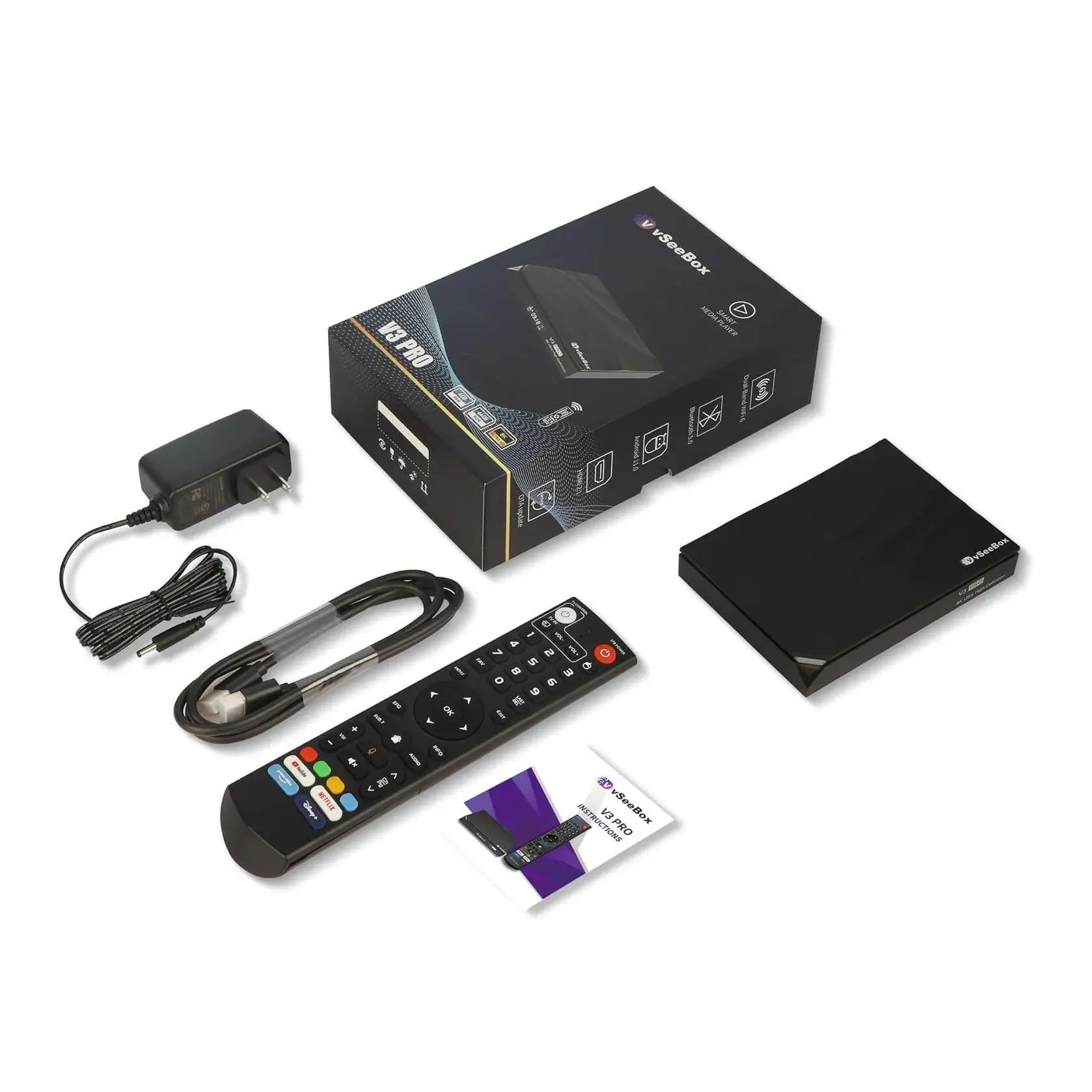vSeeBox V3 Pro is the newest 2024 model upgraded from the 2023 V2 Pro. It is powered with an All winner H616 chipset with 64-bit quad-core ARM® Corte-A53 CPU and ARM® Mali-G31 GPU processor, supporting both 2.4 and 5 GHz WiFi connection, as well as a 10/100/1000 adaptive Ethernet LAN to ensure the stable and strong network signal connected. It comes together with an Android 10 google assistant ready operation system, which gives users a better streaming experience with faster-running speed and great performance.